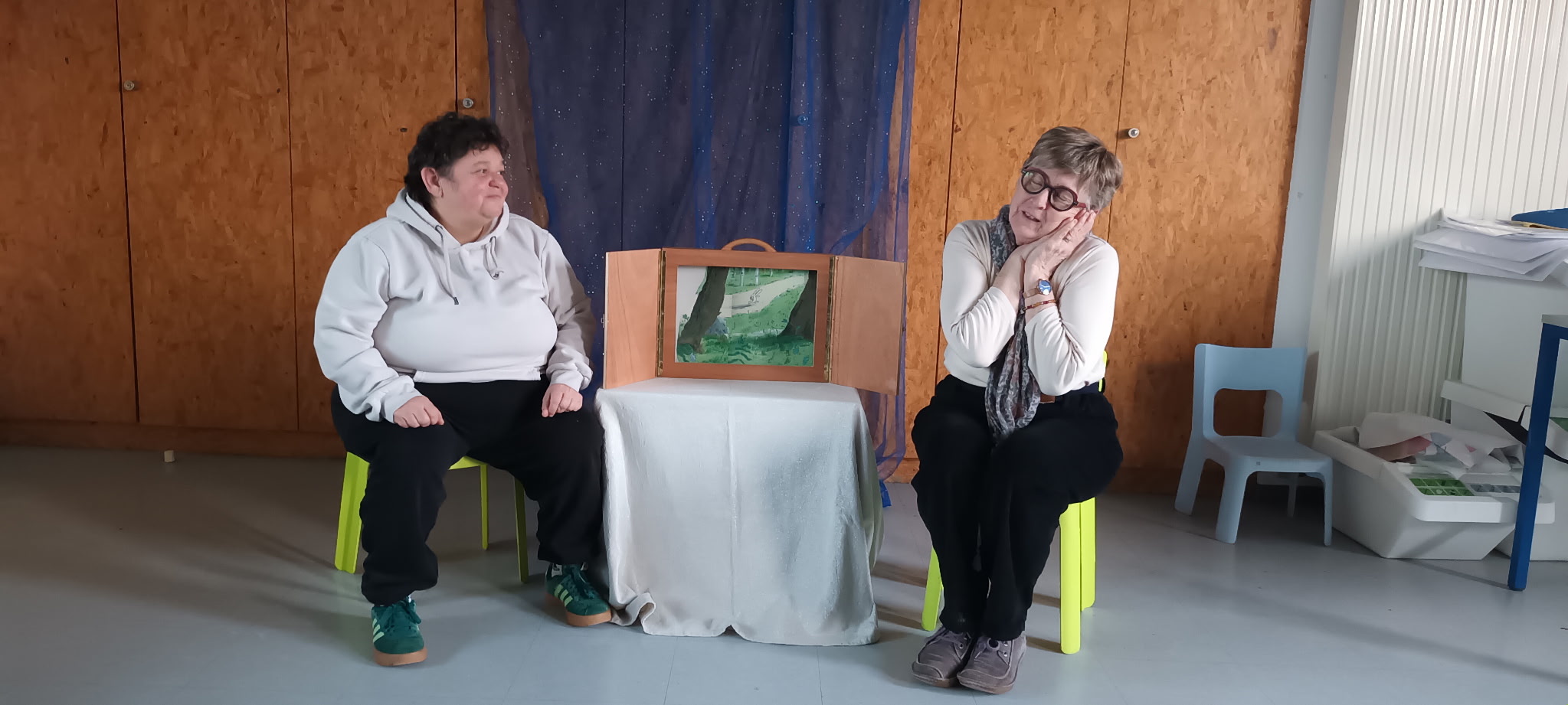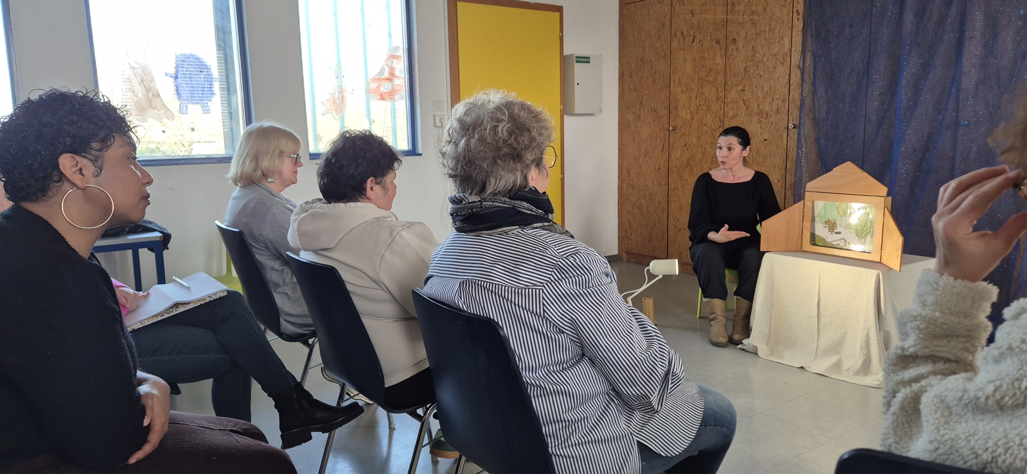 24 passeurs de lecture du Festival RAMDAM se sont retrouvés pour une formation « découverte du Kamishibai » avec Helène Vacca conteuse professionnelle.